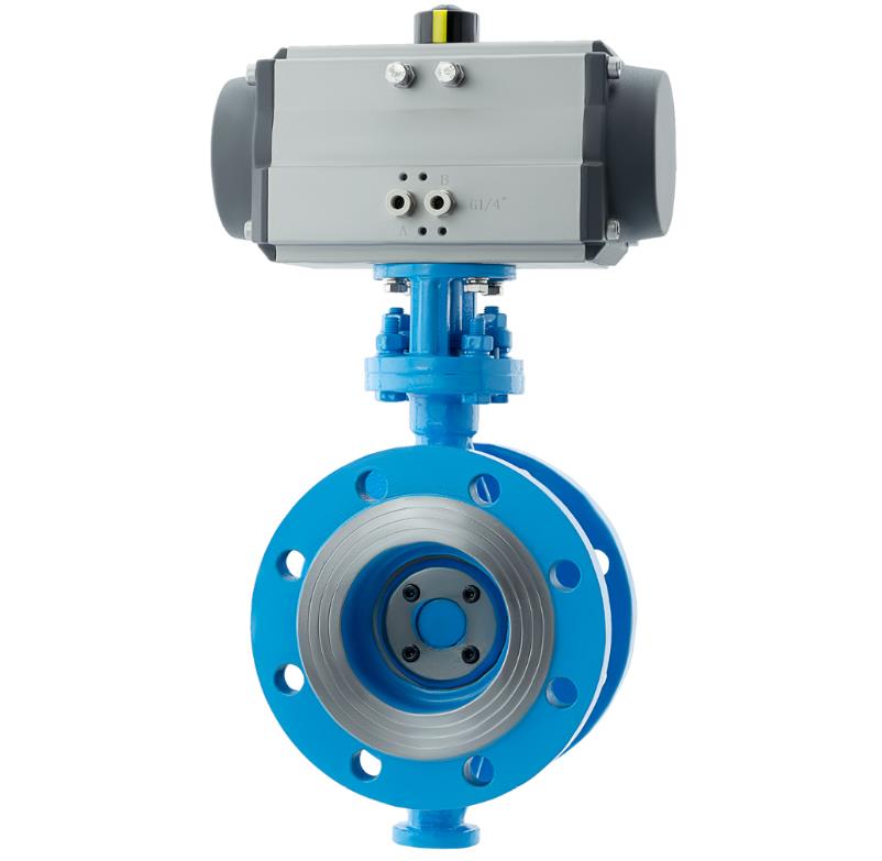 气动硬密封蝶阀D643H-16C是一种(阀板)绕垂直于通道的固定轴旋转的阀门,其由活塞式双作用或单作用(弹簧复位式)气动执行器和蝶形阀组成,属旋转高性能型调节或切断阀类,配用电-气阀门定位器或电磁阀、空气过滤减压器、限位开关(阀位回讯器),可实现对工艺管路中流体介质的比例调节和二位切断控制,从而达到对流体介质的流量、压力、温度、液位等参数的自动化控制。广泛适用于气体、浊液体、浓浆液或灰粉、悬浮颗粒类等介质