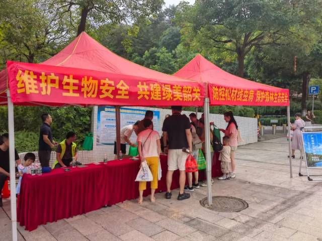 韶关市林业局分别在韶关国家森林公园、南雄市雄州公园和翁源县龙湖广场开展线下宣传活动。活动现场,工作人员通过设立咨询展台,发放宣传资料,用通俗易懂的语言向市民讲解科普林业生物灾害防控知识,并送出精心准备的小礼品。活动同步开展《广东省林长制条例》宣传活动,呼吁市民保护森林资源,激发市民参与林业生物灾害防控工作的积极性。